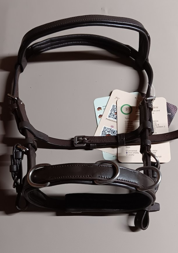 De neusriem is zeer zacht onderlegd met 3 bewegelijke ringen
